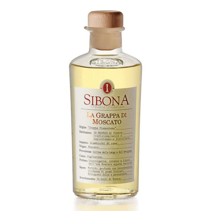 Sibona Grappa Moscato is een aromatische en expressieve grappa, gemaakt van de pomace van Moscato-druiven. Dankzij de natuurlijke zoetheid van de druiven heeft deze grappa een heerlijk parfum en een fluweelzachte smaak. Een uitstekende keuze voor liefhebbers van zachte en florale distillaten.